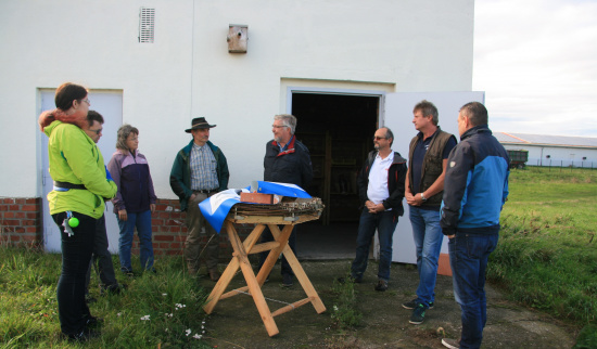 Zu einer kleinen Eröffnungszeremonie für die Artenschutzanlage Falkenhain trafen sich am 28.9. alle am Umbau Beteiligten.